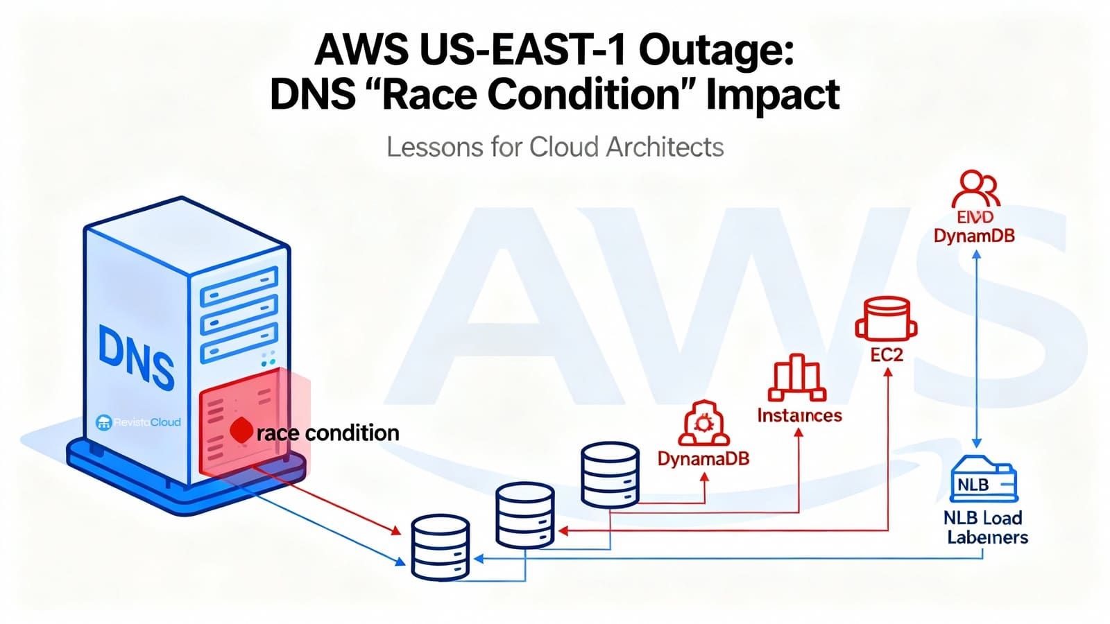 The recent outage in the AWS North Virginia region (us-east-1), which affected numerous services on October 19 and 20, was caused by a race condition in the automation that manages Amazon DynamoDB's DNS. This error triggered a massive impact, affecting critical services such as IAM, EC2, Lambda, and many others, as the regional DynamoDB endpoint resolution failed.